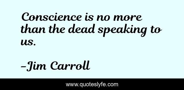 This page presents the quote "Conscience is no more than the dead speaking to us.". Author of this quote is Jim Carroll. This quote is about conscience, afterlife, ghosts, death, poetry,.