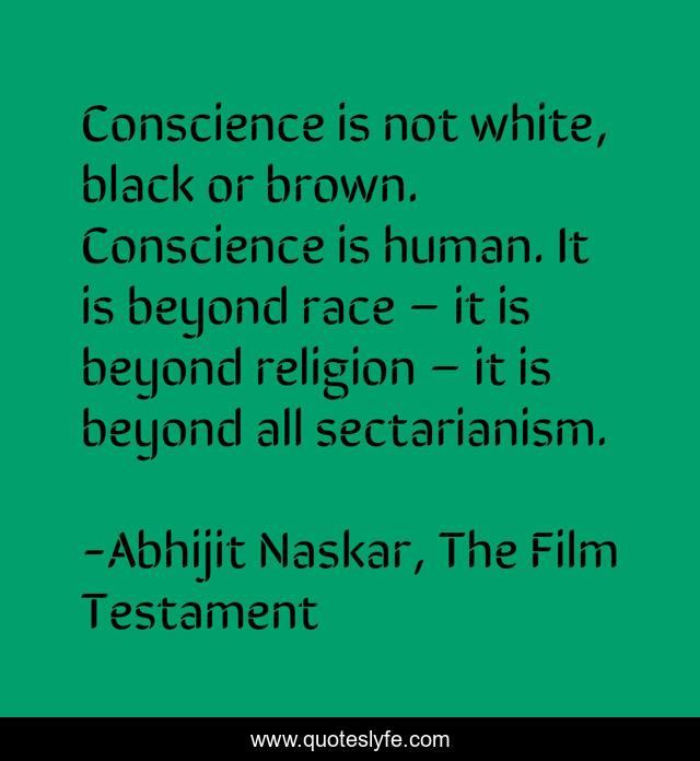 "Abhijit Naskar, The Film Testament Quotes." Quoteslyfe.com, 2025. Mon. 08 Dec. 2025. <https://www.quoteslyfe.com/quote/Conscience-is-not-white-black-or-brown-36532>.