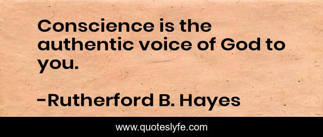 This page presents the quote "Conscience is the authentic voice of God to you.". Author of this quote is Rutherford B. Hayes. This quote is about conscience, voice,.