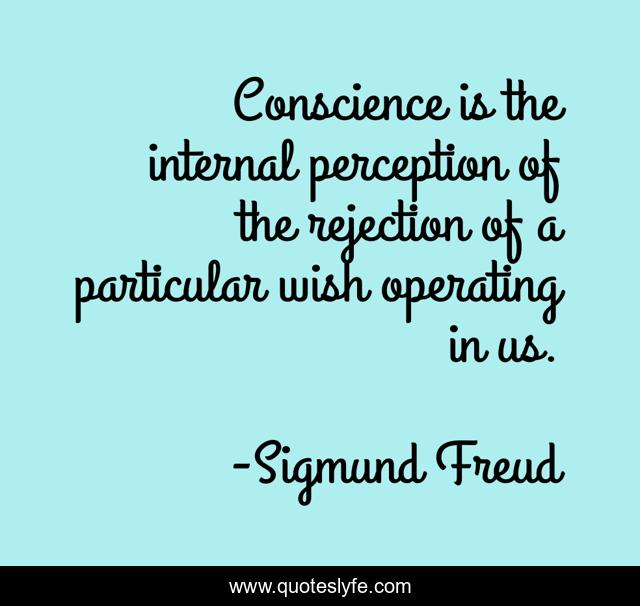 This page presents the quote "Conscience is the internal perception of the rejection of a particular wish operating in us.". Author of this quote is Sigmund Freud. This quote is about conscience, perception, freud,.