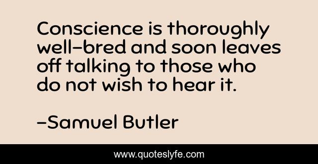 This page presents the quote "Conscience is thoroughly well-bred and soon leaves off talking to those who do not wish to hear it.". Author of this quote is Samuel Butler. .