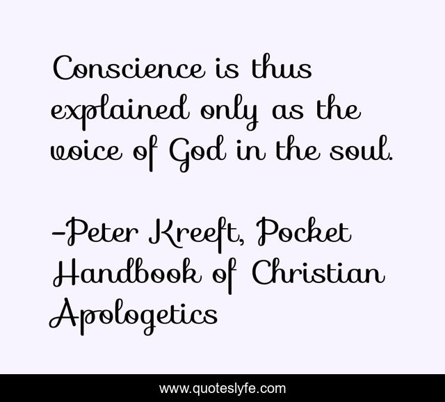 "Peter Kreeft, Pocket Handbook of Christian Apologetics Quotes." Quoteslyfe.com, 2025. Fri. 05 Dec. 2025. <https://www.quoteslyfe.com/quote/Conscience-is-thus-explained-only-as-the-11102>.
