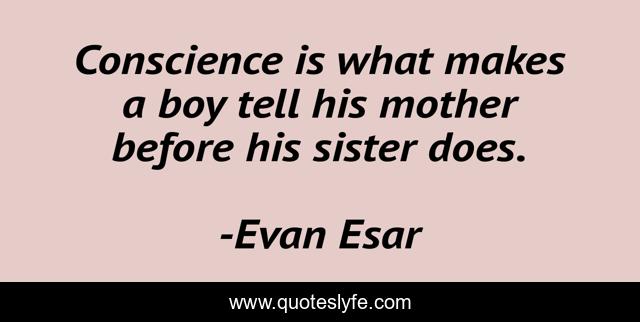 This page presents the quote "Conscience is what makes a boy tell his mother before his sister does.". Author of this quote is Evan Esar. This quote is about conscience, guilt, humor,.