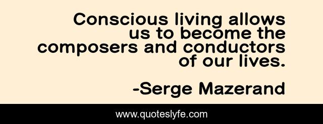 This page presents the quote "Conscious living allows us to become the composers and conductors of our lives.". Author of this quote is Serge Mazerand. This quote is about mindfulness-practice, awareness,.