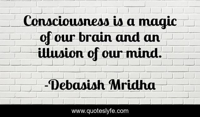 This page presents the quote "Consciousness is a magic of our brain and an illusion of our mind.". Author of this quote is Debasish Mridha. This quote is about illusion-of-the-mind, consciousness, philosophy, debasish-mridha, quotes, magic-of-the-brain, inspirational, enthusiasm, debasish-mridha-m-d,.