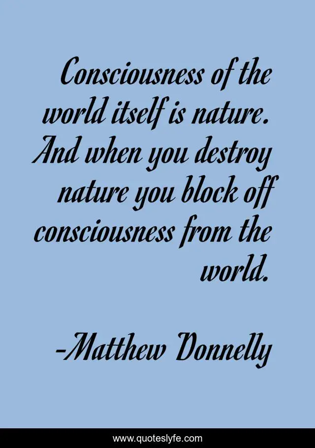 "Matthew Donnelly Quotes." Quoteslyfe.com, 2025. Fri. 05 Dec. 2025. <https://www.quoteslyfe.com/quote/Consciousness-of-the-world-itself-is-nature-72985>.