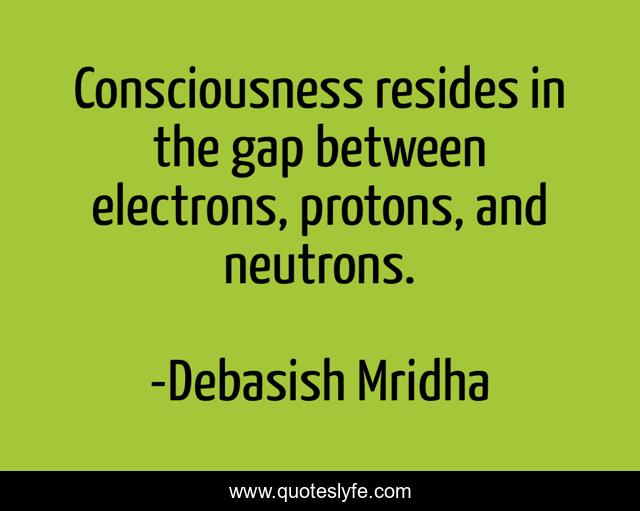 This page presents the quote "Consciousness resides in the gap between electrons, protons, and neutrons.". Author of this quote is Debasish Mridha. This quote is about consciousness, philosophy, debasish-mridha, quotes, inspirational, enthusiasm, debasish-mridha-m-d, what-is-consciousness,.