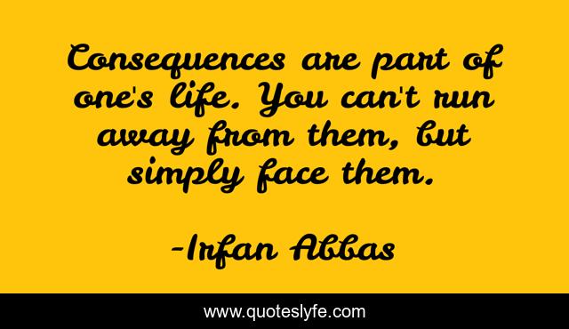 This page presents the quote "Consequences are part of one's life. You can't run away from them, but simply face them.". Author of this quote is Irfan Abbas. This quote is about facts, life, problems, consequences, face,.