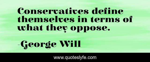 This page presents the quote "Conservatives define themselves in terms of what they oppose.". Author of this quote is George Will. This quote is about themselves, terms, define,.