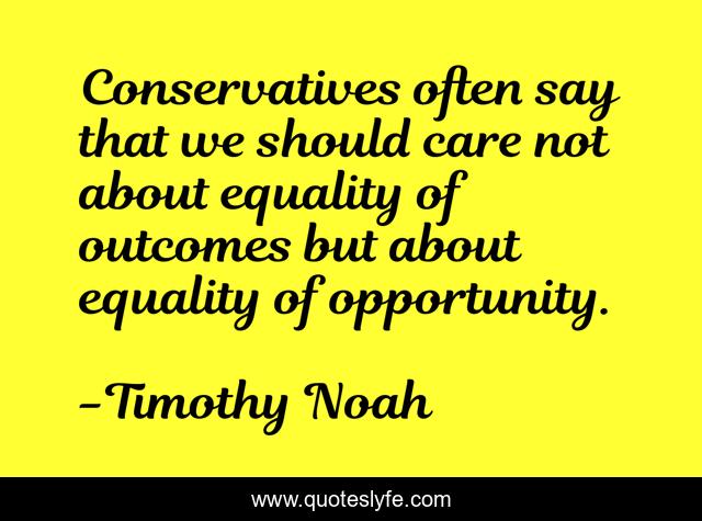 This page presents the quote "Conservatives often say that we should care not about equality of outcomes but about equality of opportunity.". Author of this quote is Timothy Noah. This quote is about opportunity, care,.