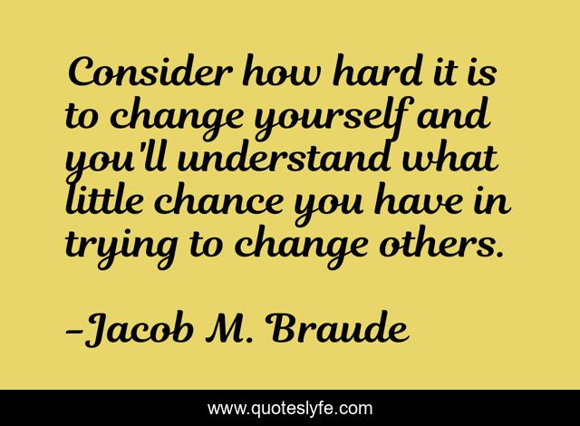 "Jacob M. Braude Quotes." Quoteslyfe.com, 2025. Fri. 05 Dec. 2025. <https://www.quoteslyfe.com/quote/Consider-how-hard-it-is-to-change-59473>.