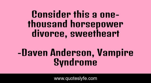 "Daven Anderson, Vampire Syndrome Quotes." Quoteslyfe.com, 2025. Fri. 05 Dec. 2025. <https://www.quoteslyfe.com/quote/Consider-this-a-one-thousand-horsepower-divorce-173012>.