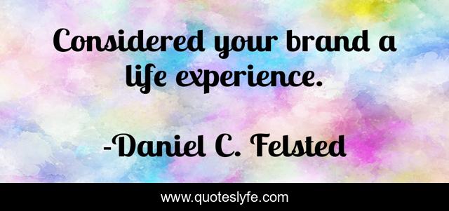 "Daniel C. Felsted Quotes." Quoteslyfe.com, 2025. Tue. 09 Dec. 2025. <https://www.quoteslyfe.com/quote/Considered-your-brand-a-life-experience-237476>.