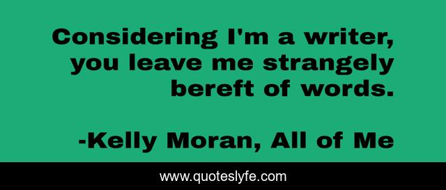 "Kelly Moran, All of Me Quotes." Quoteslyfe.com, 2025. Sat. 06 Dec. 2025. <https://www.quoteslyfe.com/quote/Considering-I-m-a-writer-you-leave-186995>.