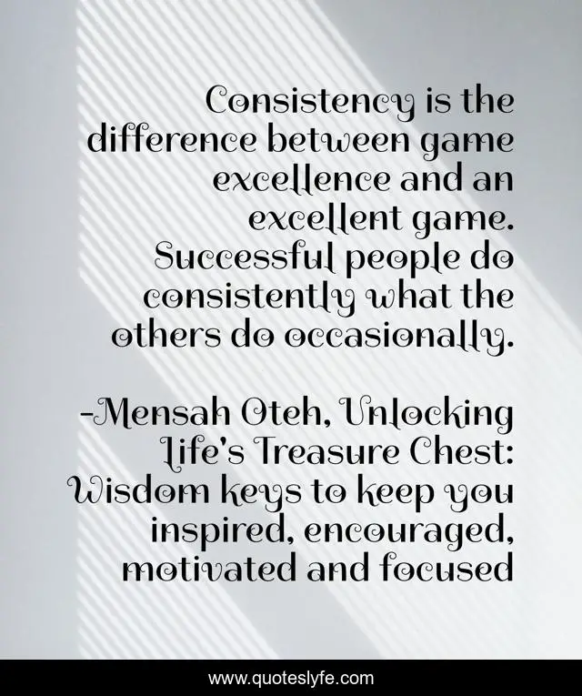 "Mensah Oteh, Unlocking Life's Treasure Chest: Wisdom keys to keep you inspired, encouraged, motivated and focused Quotes." Quoteslyfe.com, 2025. Sun. 07 Dec. 2025. <https://www.quoteslyfe.com/quote/Consistency-is-the-difference-between-game-excellence-15920>.