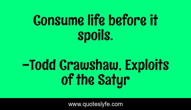 "Todd Crawshaw, Exploits of the Satyr Quotes." Quoteslyfe.com, 2025. Sat. 06 Dec. 2025. <https://www.quoteslyfe.com/quote/Consume-life-before-it-spoils-190597>.