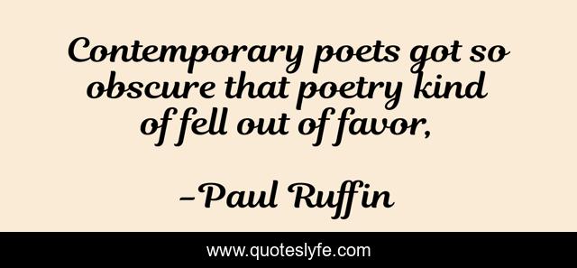 This page presents the quote "Contemporary poets got so obscure that poetry kind of fell out of favor, ". Author of this quote is Paul Ruffin. This quote is about poetry-life, poetry, writing,.