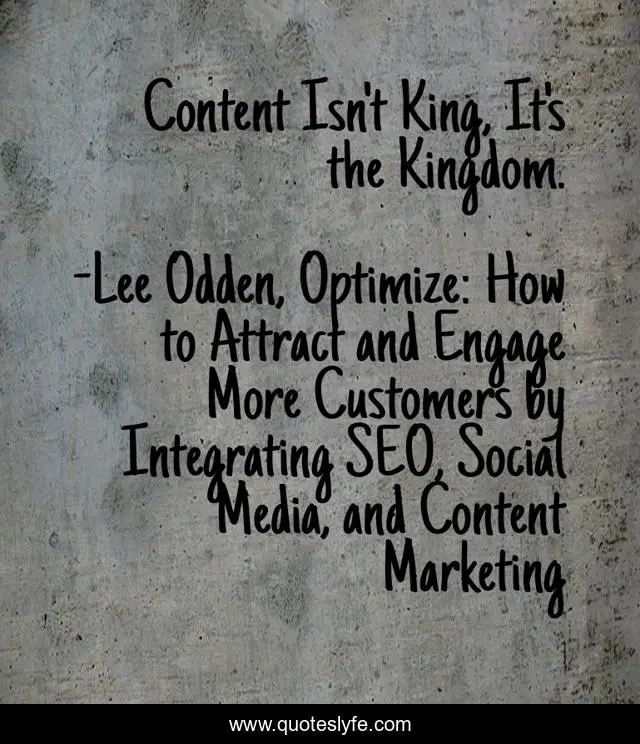 "Lee Odden, Optimize: How to Attract and Engage More Customers by Integrating SEO, Social Media, and Content Marketing Quotes." Quoteslyfe.com, 2025. Fri. 05 Dec. 2025. <https://www.quoteslyfe.com/quote/Content-Isn-t-King-It-s-the-237456>.