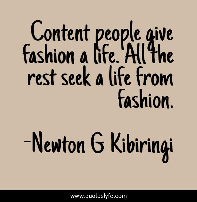 This page presents the quote "Content people give fashion a life. All the rest seek a life from fashion.". Author of this quote is Newton G Kibiringi. This quote is about life, fashion, contentment,.