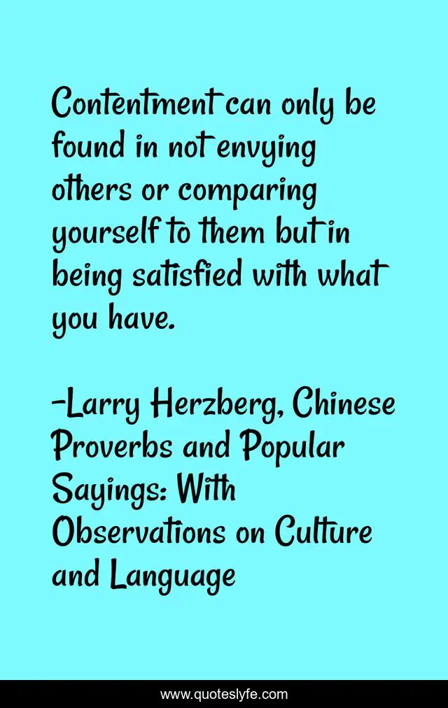 This page presents the quote "Contentment can only be found in not envying others or comparing yourself to them but in being satisfied with what you have.". Author of this quote is Larry Herzberg, Chinese Proverbs and Popular Sayings: With Observations on Culture and Language. This quote is about sayings, language, proverbs, travel, culture, china,.