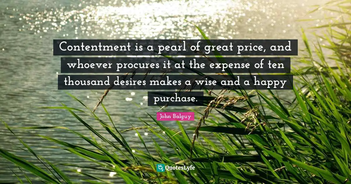 This page presents the quote "Contentment is a pearl of great price, and whoever procures it at the expense of ten thousand desires makes a wise and a happy purchase.". Author of this quote is John Balguy. .