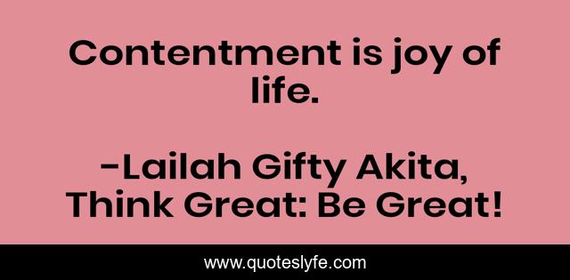 "Lailah Gifty Akita, Think Great: Be Great! Quotes." Quoteslyfe.com, 2025. Fri. 05 Dec. 2025. <https://www.quoteslyfe.com/quote/Contentment-is-joy-of-life-97224>.
