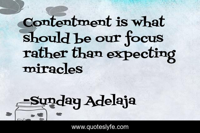 This page presents the quote "Contentment is what should be our focus rather than expecting miracles". Author of this quote is Sunday Adelaja. This quote is about miracles, contentment, focus,.