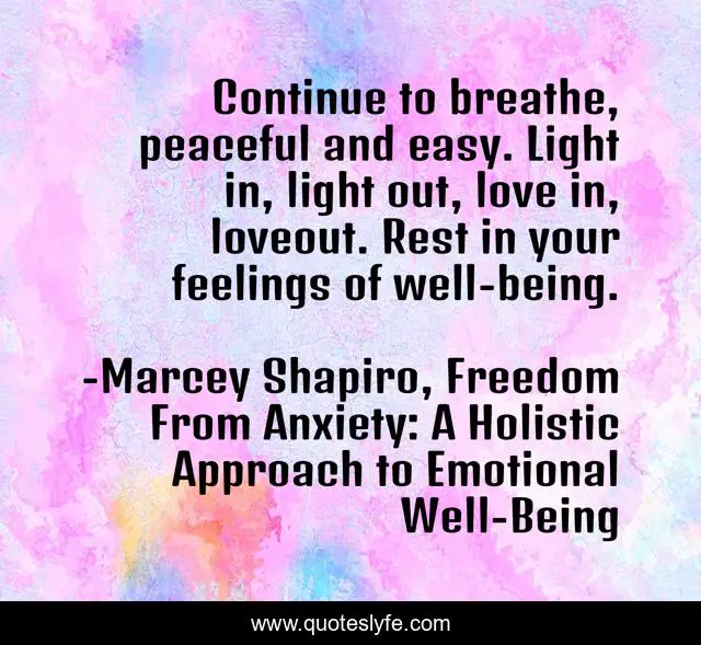 "Marcey Shapiro, Freedom From Anxiety: A Holistic Approach to Emotional Well-Being Quotes." Quoteslyfe.com, 2025. Mon. 08 Dec. 2025. <https://www.quoteslyfe.com/quote/Continue-to-breathe-peaceful-and-easy-Light-118076>.