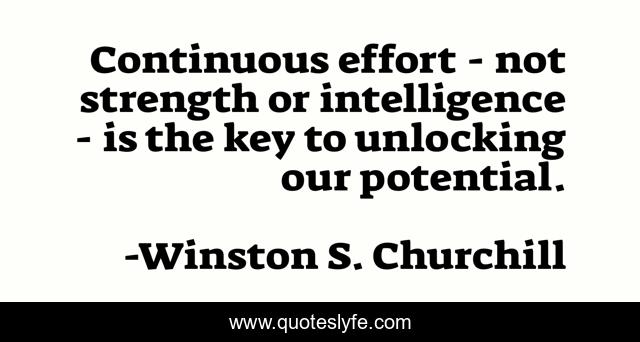 This page presents the quote "Continuous effort - not strength or intelligence - is the key to unlocking our potential.". Author of this quote is Winston S. Churchill. .