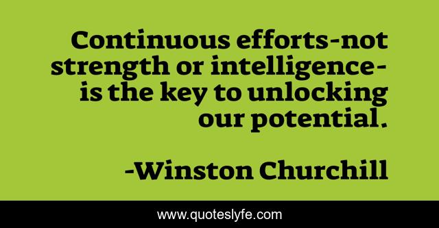 This page presents the quote "Continuous efforts-not strength or intelligence-is the key to unlocking our potential.". Author of this quote is Winston Churchill. This quote is about , pressure, diamonds,.