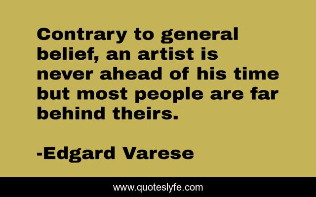 This page presents the quote "Contrary to general belief, an artist is never ahead of his time but most people are far behind theirs.". Author of this quote is Edgard Varese. This quote is about people, time, artist,.