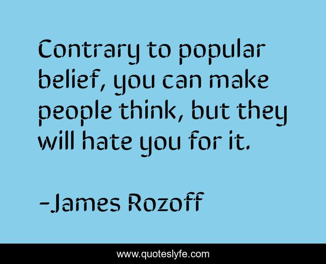 This page presents the quote "Contrary to popular belief, you can make people think, but they will hate you for it.". Author of this quote is James Rozoff. .