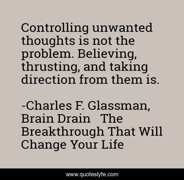 "Charles F. Glassman, Brain Drain The Breakthrough That Will Change Your Life Quotes." Quoteslyfe.com, 2025. Fri. 05 Dec. 2025. <https://www.quoteslyfe.com/quote/Controlling-unwanted-thoughts-is-not-the-problem-121473>.