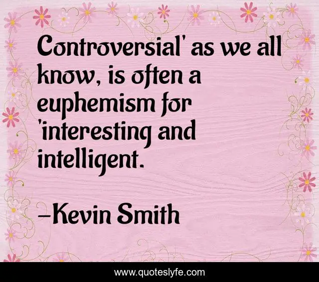 This page presents the quote "Controversial' as we all know, is often a euphemism for 'interesting and intelligent.". Author of this quote is Kevin Smith. This quote is about intelligence, diversity, controversy,.