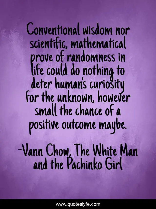 "Vann Chow, The White Man and the Pachinko Girl Quotes." Quoteslyfe.com, 2025. Fri. 05 Dec. 2025. <https://www.quoteslyfe.com/quote/Conventional-wisdom-nor-scientific-mathematical-prove-of-80429>.