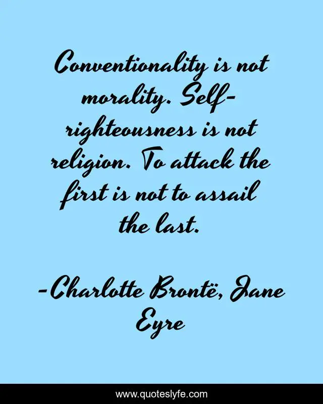 "Charlotte Brontë, Jane Eyre Quotes." Quoteslyfe.com, 2025. Sat. 06 Dec. 2025. <https://www.quoteslyfe.com/quote/Conventionality-is-not-morality-Self-righteousness-is-2775>.