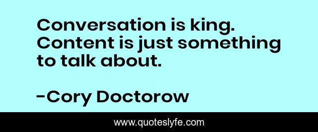 "Cory Doctorow Quotes." Quoteslyfe.com, 2025. Fri. 05 Dec. 2025. <https://www.quoteslyfe.com/quote/Conversation-is-king-Content-is-just-something-185218>.
