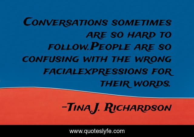 This page presents the quote "Conversations sometimes are so hard to follow.People are so confusing with the wrong facialexpressions for their words.". Author of this quote is Tina J. Richardson. This quote is about communication, autism,.
