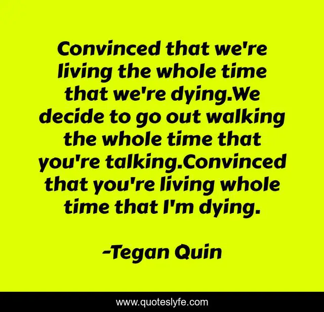 "Tegan Quin Quotes." Quoteslyfe.com, 2025. Mon. 08 Dec. 2025. <https://www.quoteslyfe.com/quote/Convinced-that-we-re-living-the-whole-223102>.