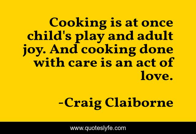 This page presents the quote "Cooking is at once child's play and adult joy. And cooking done with care is an act of love.". Author of this quote is Craig Claiborne. This quote is about food, cooking,.
