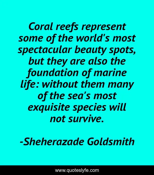 This page presents the quote "Coral reefs represent some of the world's most spectacular beauty spots, but they are also the foundation of marine life: without them many of the sea's most exquisite species will not survive.". Author of this quote is Sheherazade Goldsmith. This quote is about world, life, sea,.
