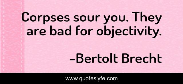 This page presents the quote "Corpses sour you. They are bad for objectivity.". Author of this quote is Bertolt Brecht. This quote is about corpse, death, objectivity, reality,.