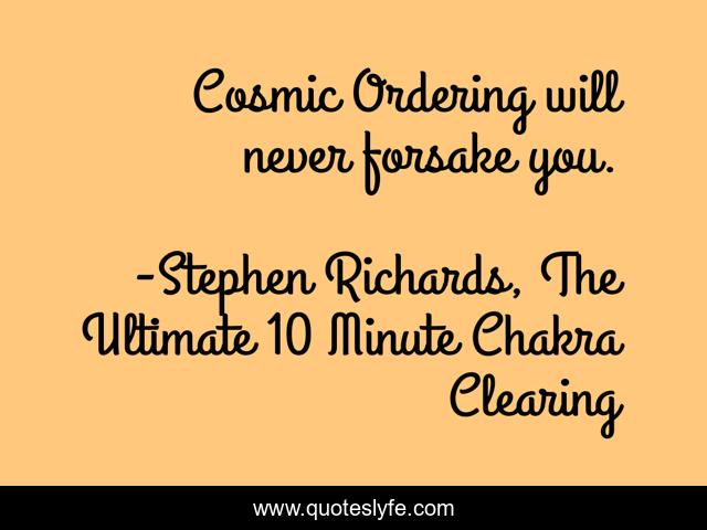 "Stephen Richards, The Ultimate 10 Minute Chakra Clearing Quotes." Quoteslyfe.com, 2025. Fri. 05 Dec. 2025. <https://www.quoteslyfe.com/quote/Cosmic-Ordering-will-never-forsake-you-16907>.
