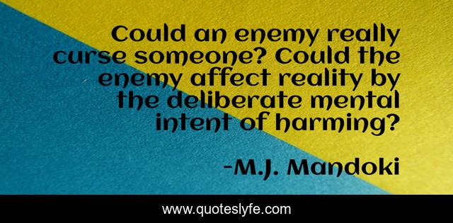 This page presents the quote "Could an enemy really curse someone? Could the enemy affect reality by the deliberate mental intent of harming?". Author of this quote is M.J. Mandoki. This quote is about action, adventure,.