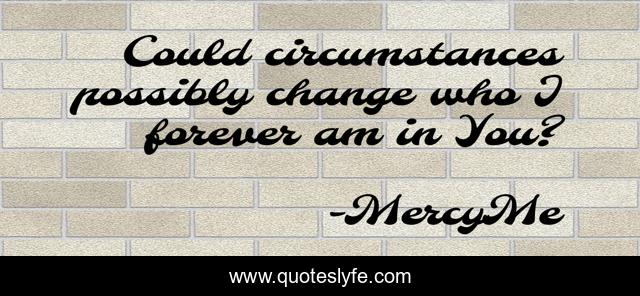 This page presents the quote "Could circumstances possibly change who I forever am in You?". Author of this quote is MercyMe. This quote is about faith, discipleship, perspective, identity,.