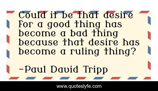 This page presents the quote "Could it be that desire for a good thing has become a bad thing because that desire has become a ruling thing?". Author of this quote is Paul David Tripp. This quote is about desire, idolatry,.