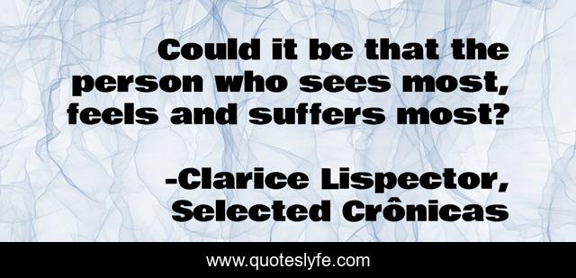 This page presents the quote "Could it be that the person who sees most, feels and suffers most?". Author of this quote is Clarice Lispector, Selected Crônicas. This quote is about suffering, love, affection,.