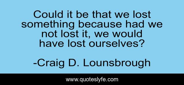 "Craig D. Lounsbrough Quotes." Quoteslyfe.com, 2025. Fri. 05 Dec. 2025. <https://www.quoteslyfe.com/quote/Could-it-be-that-we-lost-something-107009>.