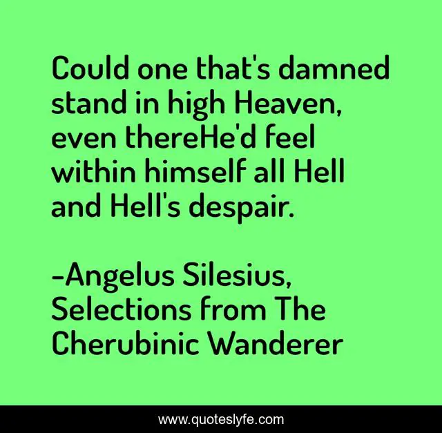 This page presents the quote "Could one that's damned stand in high Heaven, even thereHe'd feel within himself all Hell and Hell's despair.". Author of this quote is Angelus Silesius, Selections from The Cherubinic Wanderer. This quote is about hell, despair, damnation,.