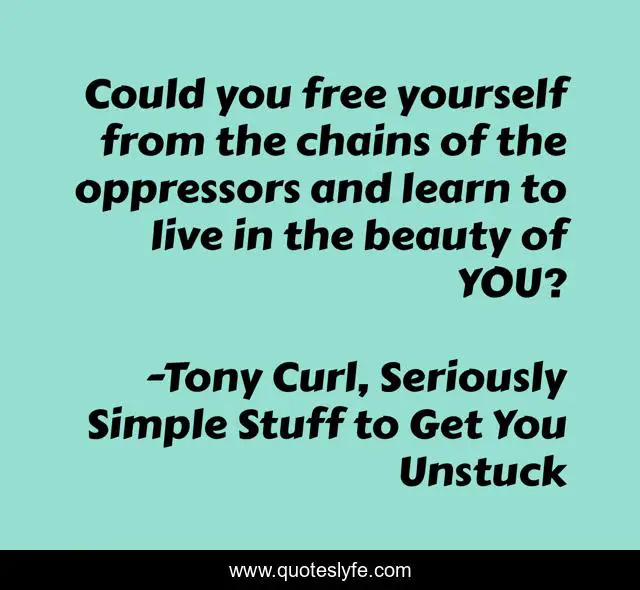 This page presents the quote "Could you free yourself from the chains of the oppressors and learn to live in the beauty of YOU?". Author of this quote is Tony Curl, Seriously Simple Stuff to Get You Unstuck. This quote is about unchained, break-the-shackles, goals, dreams, free-yourself,.